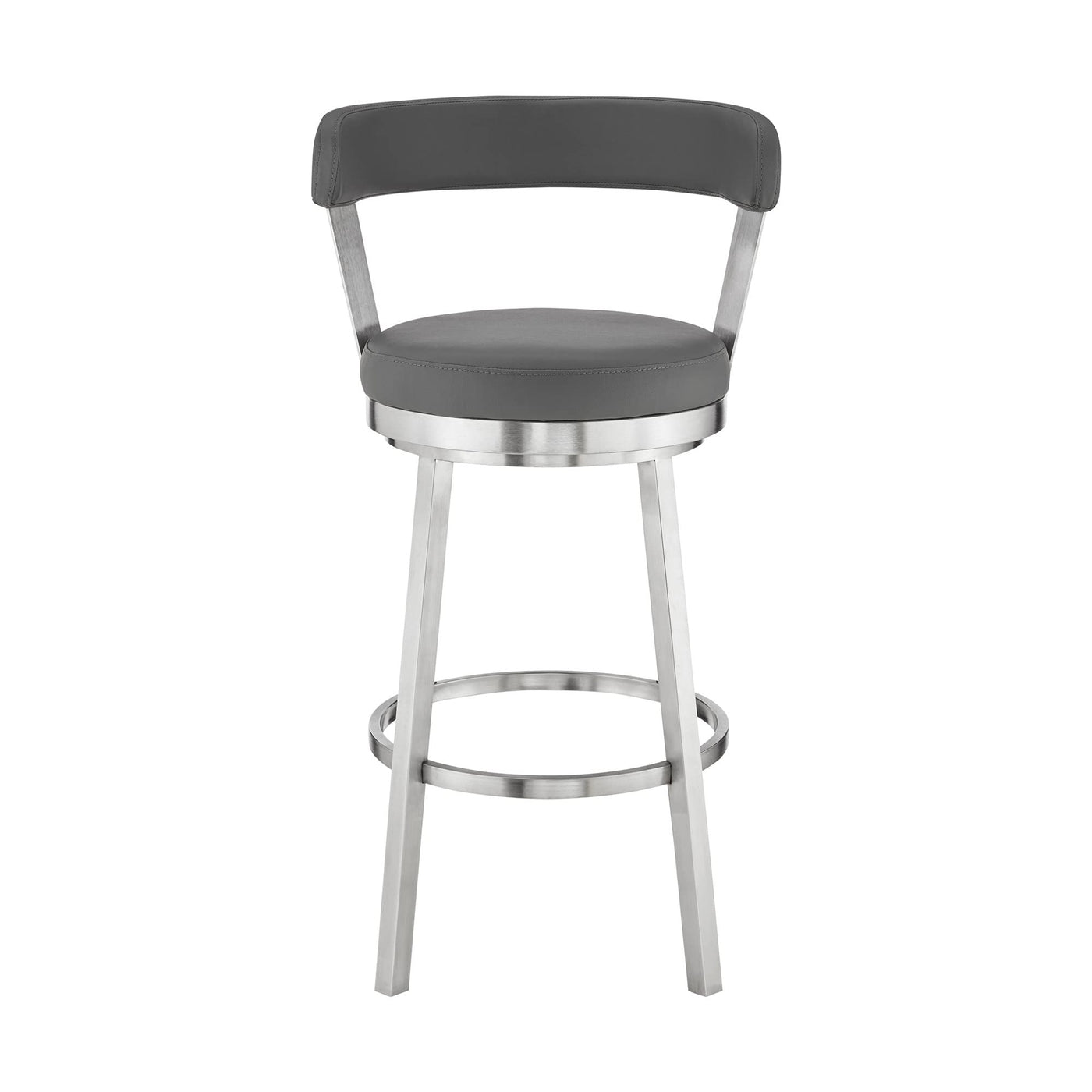 Built to make you enjoy comfort without ever missing out the touch of class that will lift your entire space, this 26' Chic Grey Faux Leather with Stainless Steel Finish Swivel Bar Stool embodies every element of a good bar stool. Clothed in all stainless steel finish and soft faux leather upholstery, this stool with strong metal accents will perfectly complement any existing decor in your home. Its well-padded foam cushion will provide the comfort you need to seat for longer periods while the perfectly-designed backrest ensures stability. The 360-degree swivel function is just one of the perks of this bar stool, but the highlight would be its high-quality steel that provides the durability you deserve, so if you're looking to use this stool for many years, you shouldn't worry about a thing. This stool will blend perfectly anywhere you decide to place it - your kitchen, lounge, office or home bar. 36' x 17' x 19'