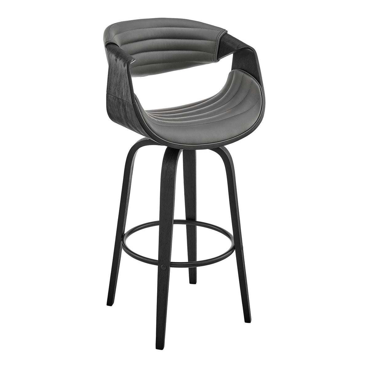 HomeRoots Gray Bent Wood/Metal/Faux Leather 30' Grey Faux Leather and Black Wood Retro Chic Bar Stool