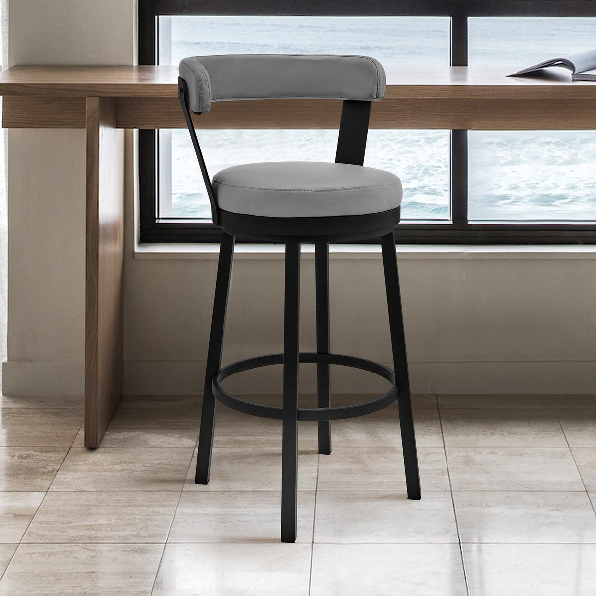 Built to make you enjoy comfort without ever missing out the touch of class that will lift your entire space, this 30' Chic Grey Faux Leather with Black Finish Swivel Bar Stool embodies every element of a good bar stool. Clothed in all black finish and soft faux leather upholstery, this stool with strong metal accents will perfectly complement any existing decor in your home. Its well-padded foam cushion will provide the comfort you need to seat for longer periods while the perfectly-designed backrest ensures stability. The 360-degree swivel function is just one of the perks of this bar stool, but the highlight would be its high-quality steel that provides the durability you deserve, so if you're looking to use this stool for many years, you shouldn't worry about a thing. This stool will blend perfectly anywhere you decide to place it - your kitchen, lounge, office or home bar. 40' x 17' x 19'
