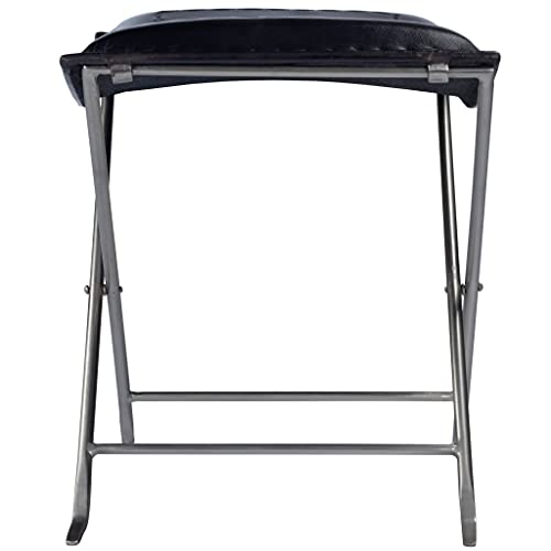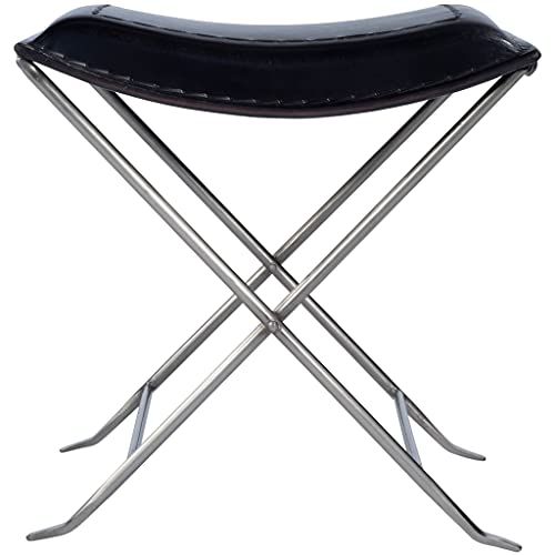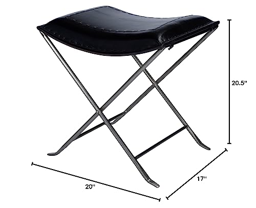 Modern Black Leather Stool HomeRoots offers a wide variety of choices, in the tensofthousands and growing, in furniture, lighting and home decor products at extremely competitive pricing. Be it your living room, dining room, kitchen, bedroom or even the bathroom, the Modern Black Leather Stool has been designed to serve a multitude of functions and look stylish while doing so. It has a simple structure of a leather seat with a soft padding in a semicircular bent towards the bottom on top of an iron structure and criss crossed legs. The soft padding of the black leather seat with black stitching lines on top of the seat and also around the edges makes this a highly functional and stylish addition to your houses furniture setup. Sleek and stylish this stool also folds for easy storage or portability. The measurements are 20.5 x 20 x 17. Specifications. Color Black. Style Transitional. Material Iron. Country of Origin India. Dimension 20.5 H x 20 W x 17 D. Weight 24 lbs