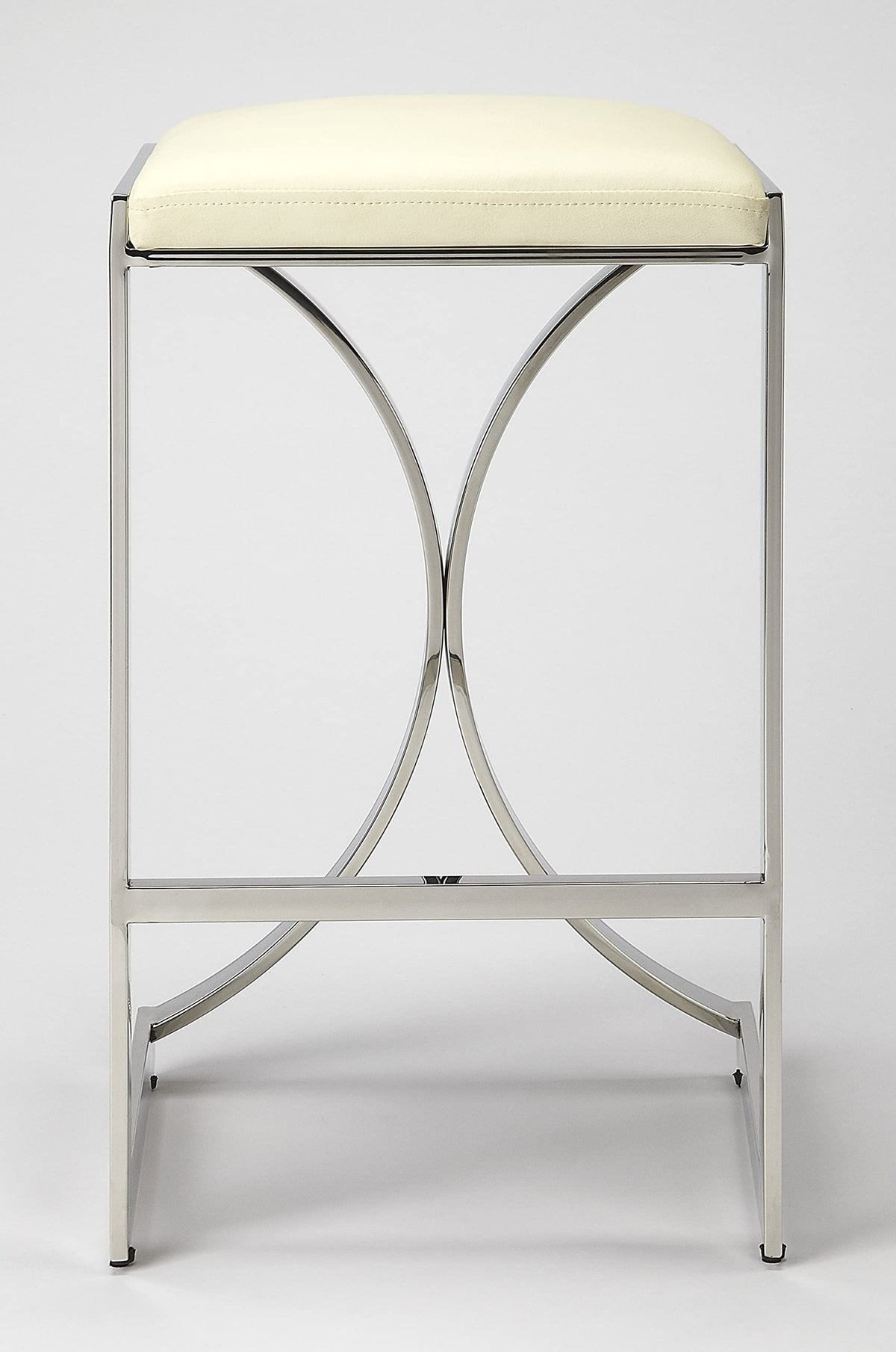 Silver Plated Counter Stool HomeRoots offers a wide variety of choices, in the tensofthousands and growing, in furniture, lighting and home decor products at extremely competitive pricing. Contemporary in style the Silver Plated Counter Stool is versatile in nature and can be paired in any vogue setup. Dont restrict this beauty to your kitchen corners, it can be perfectly paired with your vanity room or even doubled up as a bar stool. The polished solid iron framework with its gentle curves and angles makes it very alluring and attractive in appearance. The neutral cushioned seating permits you to use it against any backdrop too 24 x 14 x 14. Specifications. Color Silver. Style Modern. Seat Shape Square. Material Iron. Dimension 24 H x 14 W x 14 D. Weight 15 lbs