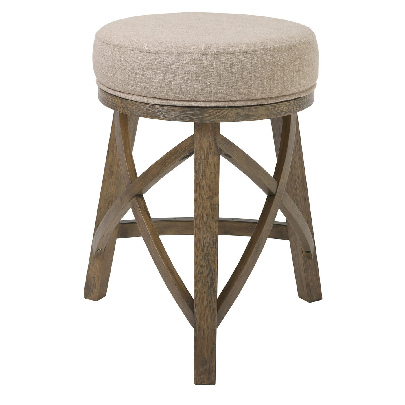 HomeRoots Ivory Hardwood, Linen Upholstery, Foam, Batting Counter Height Round 3 Leg Swivel Counter Stool with Cream Fabric