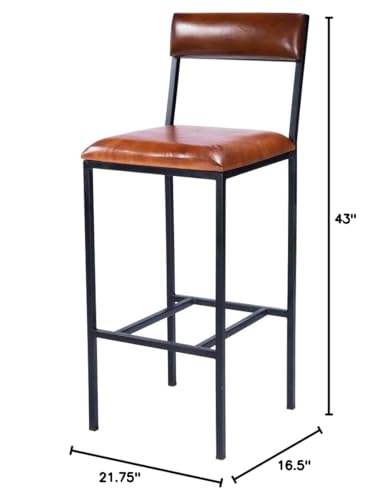 Classic Medium Brown Leather Metal Bar Stool HomeRoots offers a wide variety of choices, in the tensofthousands and growing, in furniture, lighting and home decor products at extremely competitive pricing. The Classic Leather and Metal Bar Stool is quite archetypal for its model, shape and size. Paired with tall iron legs, soft cushioned leather seat and a padded backrest, it is quintessential in the land of counter stools. The built in footrest is perfect for added stability. Brown and black have always been an age old classic combination and this counter stool delivers just that 43 x 16.5 x 21.75. Specifications. Color Medium Brown. Style Modern. Seat Shape Rectangle. Material Iron. Country of Origin India. Dimension 43 H x 16.5 W x 21.75 D. Weight 35 lbs