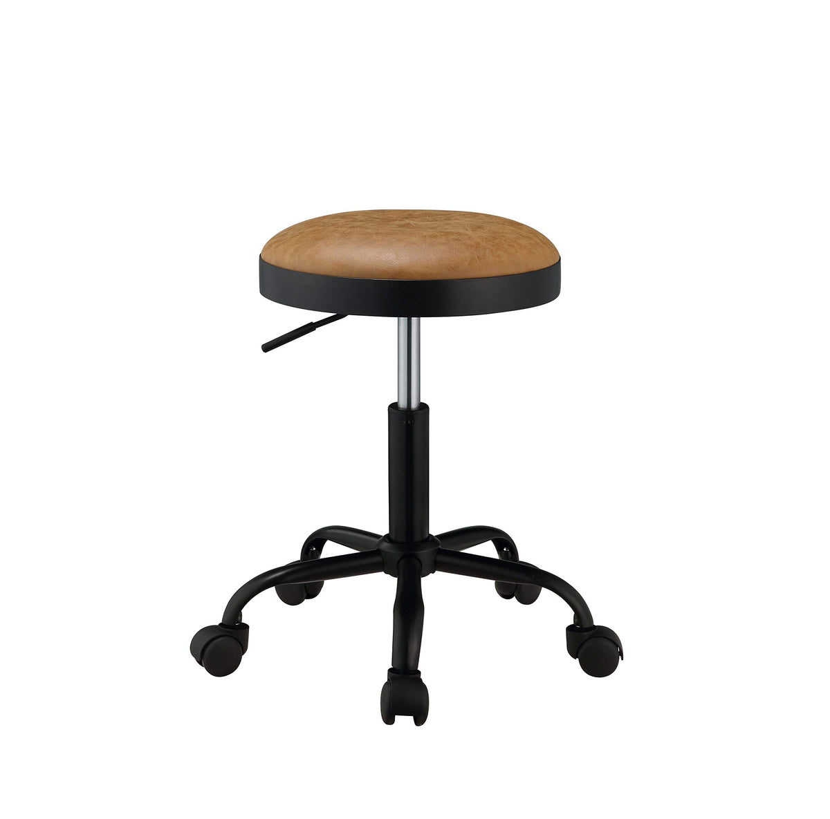 HomeRoots Metal, Upholstered (Seat), Casters, Vintage Caramel Upholstered Adjustable Set of 2 Stools
