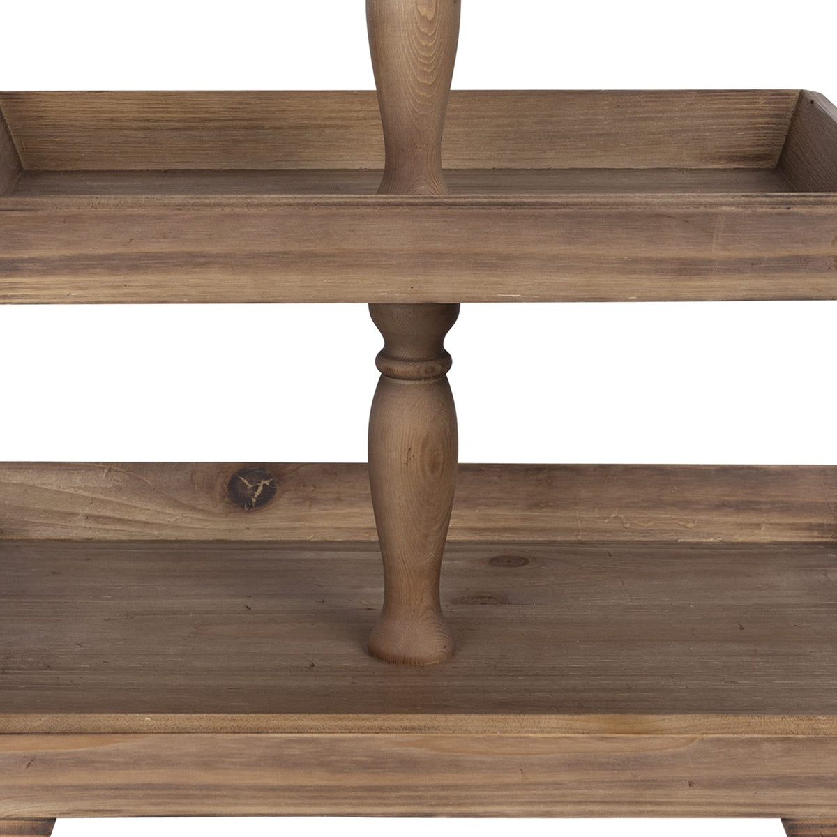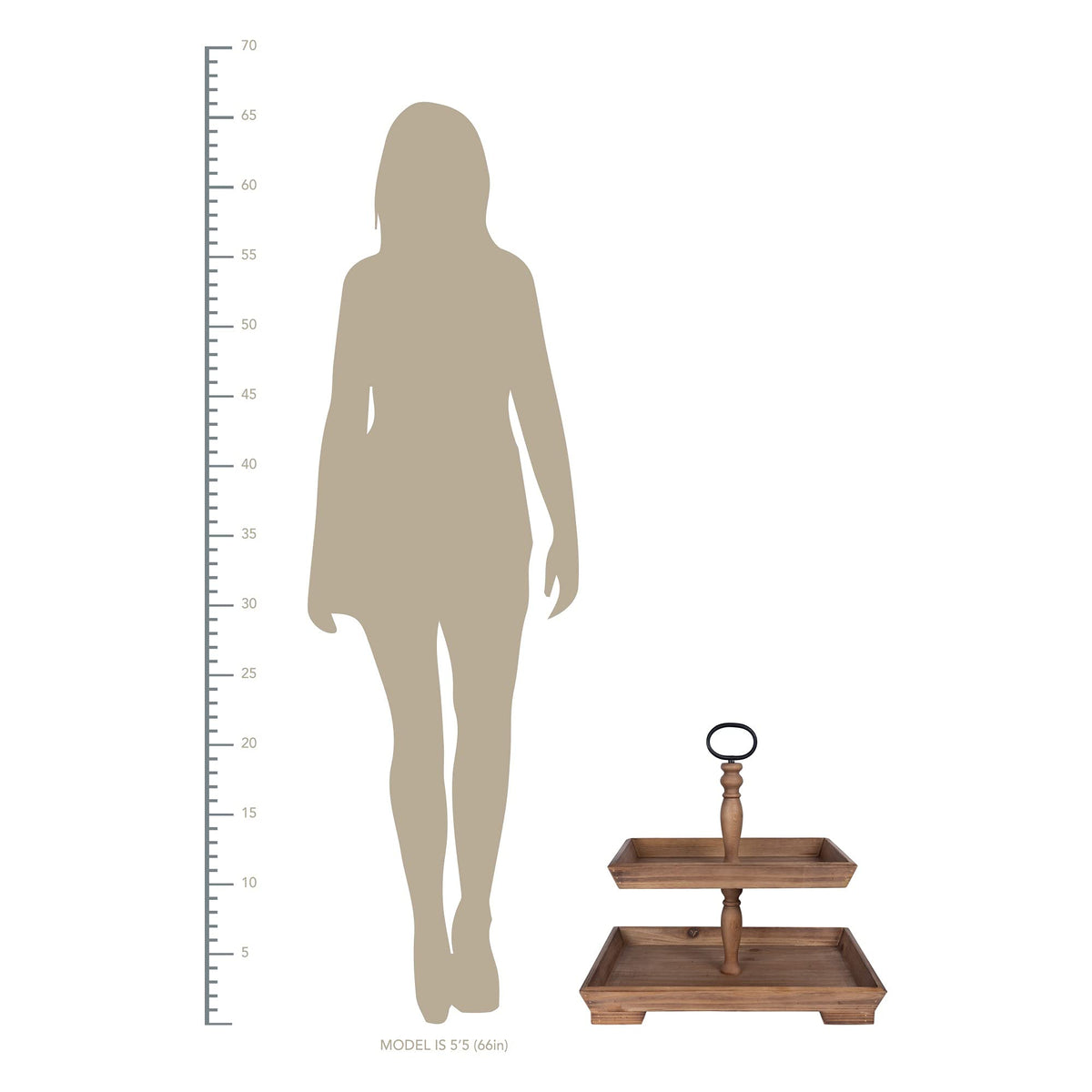 HomeRoots Natural Wood 95% Wood 5% Metal Two Tiered Wooden Serving Stand