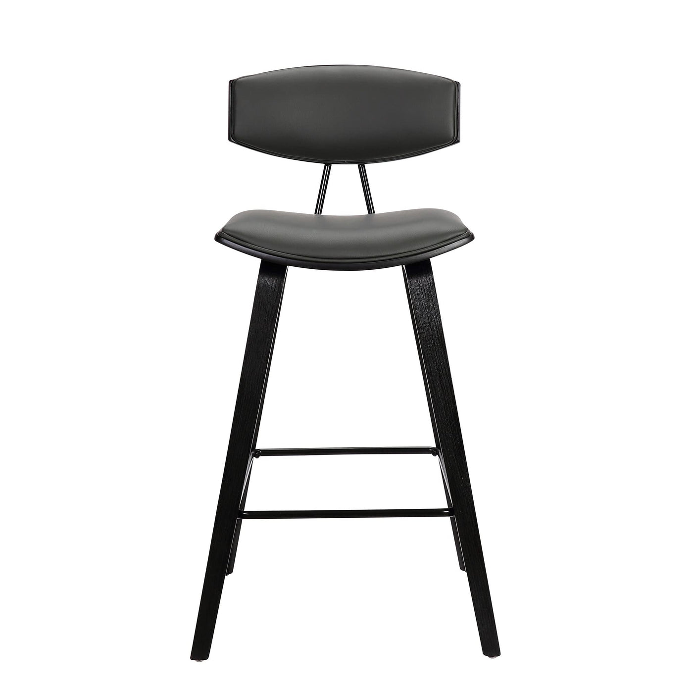 HomeRoots Poplar, Metal, Faux Leather 29†Gray Faux Leather Mid Century Modern Bar Stool