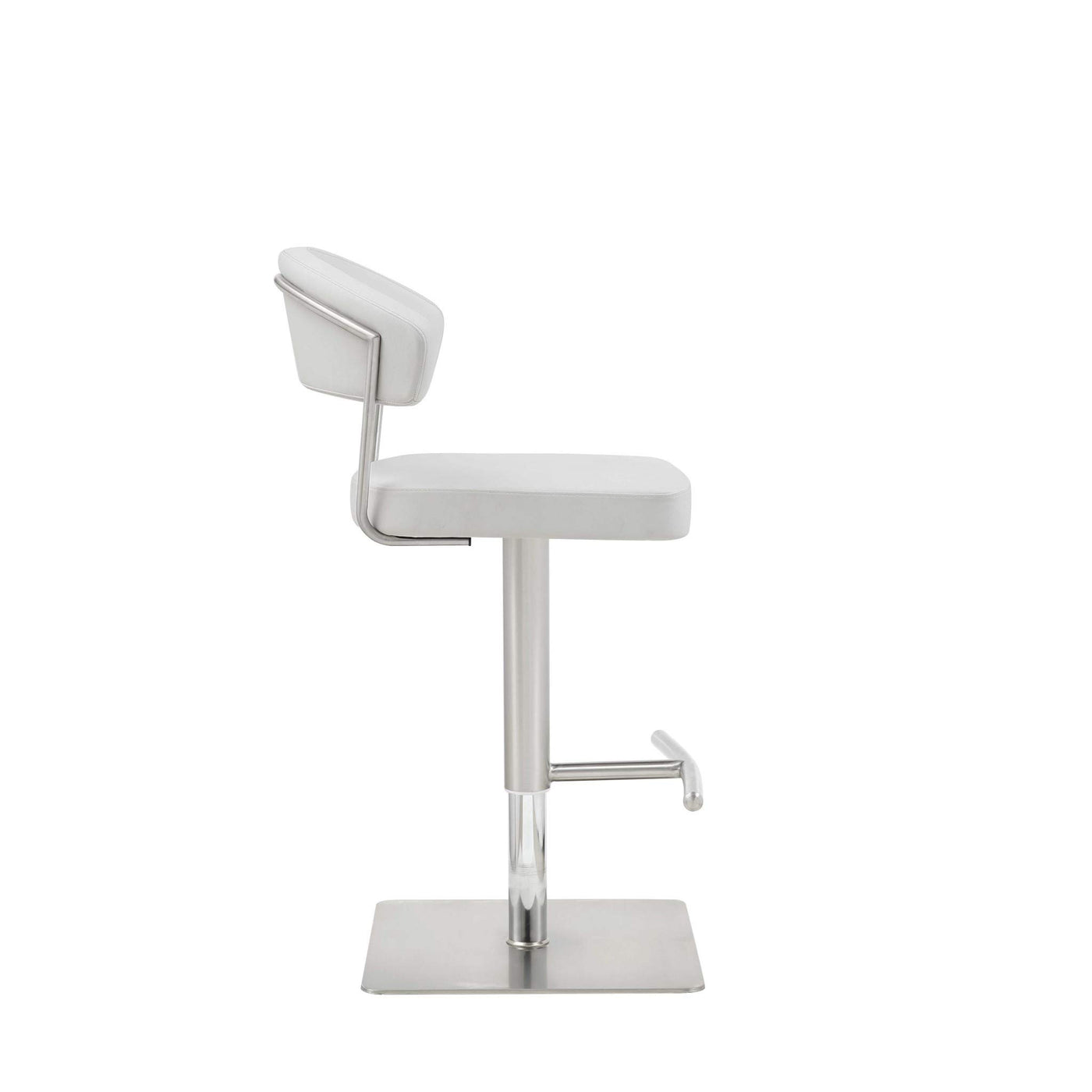 HomeRoots Stainless Steel White Faux Leather and Stainless Adjustable Bar Stool