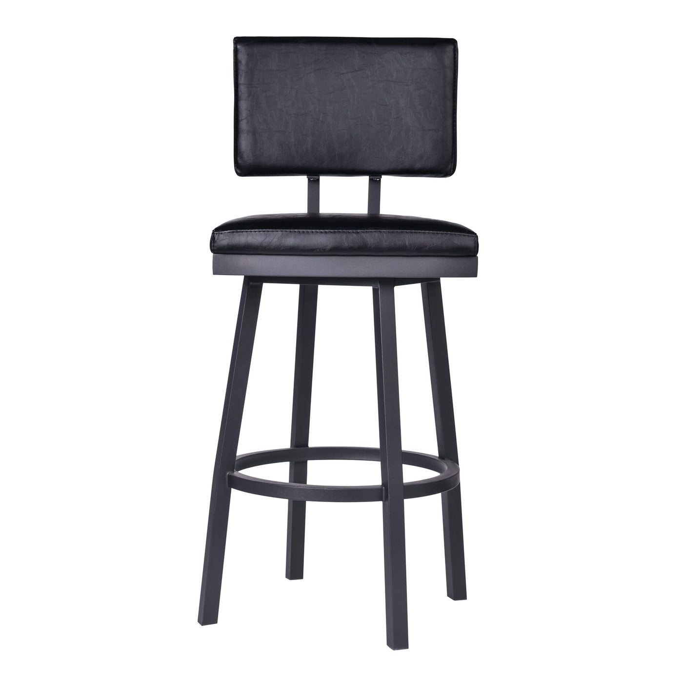 HomeRoots Vintage Black Faux Leather Metal, Faux Leather 26' Vintage Black on Black Faux Leather Rectangular Swivel Armless Bar Stool
