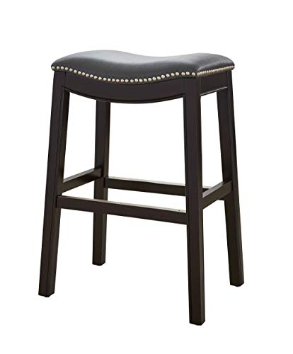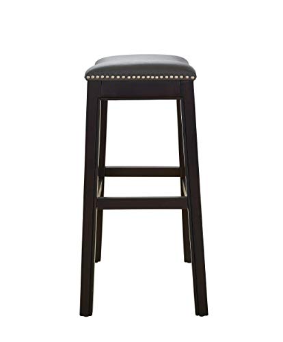 Old world details mix with modern design elements in this 25 Espresso and Gray Saddle Style Counter Height Bar Stool This rich dark finish counter height stool blends sturdy solid wood construction with soft cushioned faux leather seating that is complimented by nail head details The classic saddle style seat is comfortable and gives this stool a casual air that makes it versatile enough for kitchen bar area or any room that needs extra seating 25 x 205 14 25 Solid Wood Construction Foot Rest for Comfort Metal Cover on Footrests for scratch protection Features. 25 in Espresso Gray Saddle Style Counter Height Bar Stool. Made from high quality materialsSpecifications. Assembly Required Yes. Height 25 Inches. Width 205 Inches. Depth 1425 Inches. Material Vinyl Wood Steel. Color Espresso. Style Traditional. Country of Origin Vietnam. Weight 168 lbs