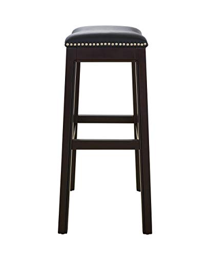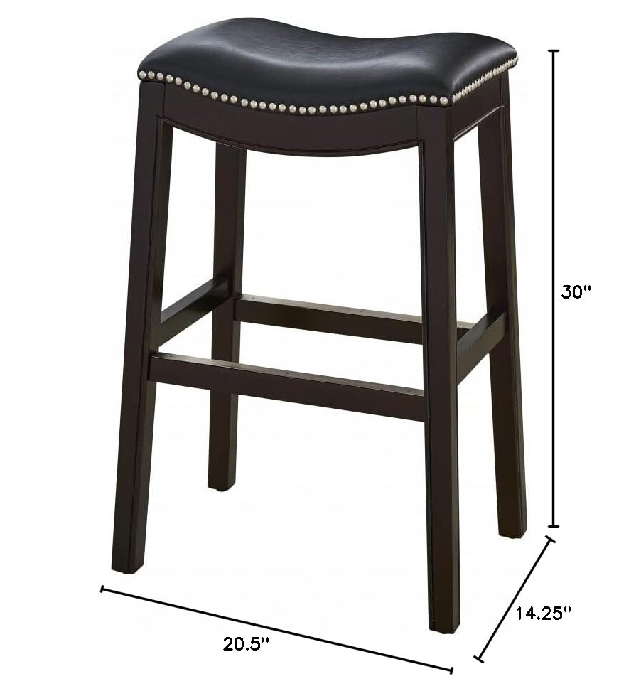 Old world details mix with modern design elements in this 30 Espresso and Black Saddle Style Counter Height Bar Stool This rich dark finish counter height stool blends sturdy solid wood construction with soft cushioned faux leather seating that is complimented by nail head details The classic saddle style seat is comfortable and gives this stool a casual air that makes it versatile enough for kitchen bar area or any room that needs extra seating 30 x 205 14 25 Solid Wood Construction Foot Rest for Comfort Metal Cover on Footrests for scratch protection Features. 30 in Espresso Black Saddle Style Counter Height Bar Stool. Made from high quality materialsSpecifications. Assembly Required Yes. Height 30 Inches. Width 205 Inches. Depth 1425 Inches. Material Vinyl Wood Steel. Color Espresso. Style Traditional. Country of Origin Vietnam. Weight 175 lbs