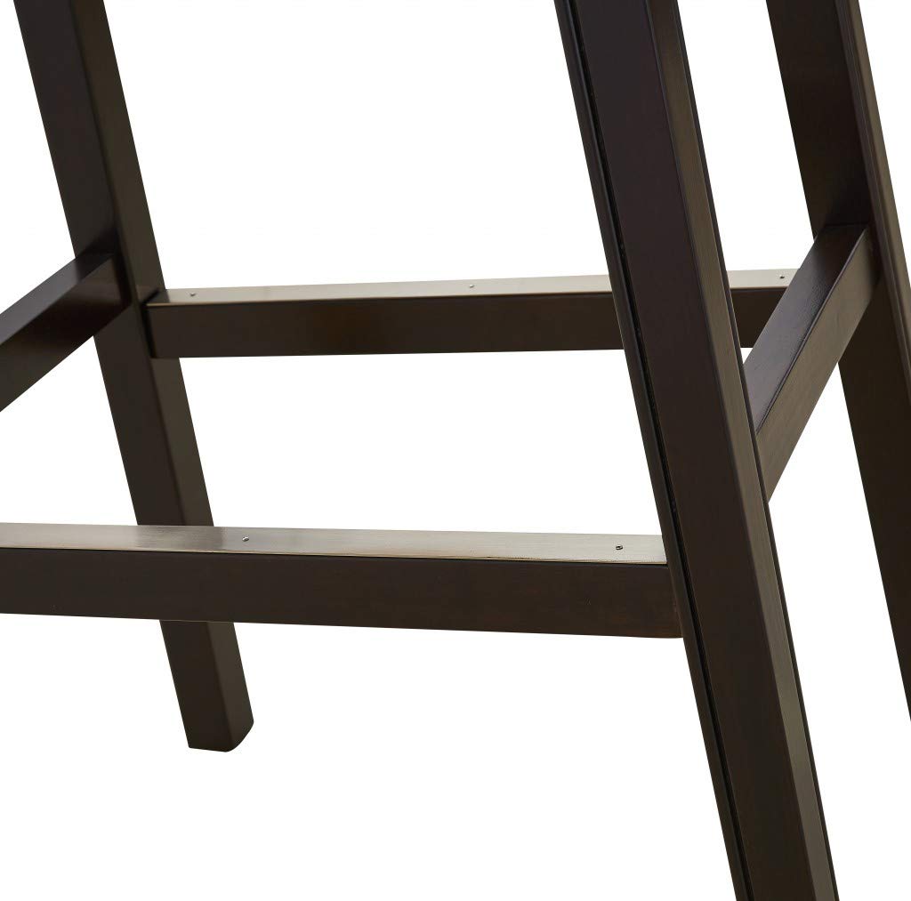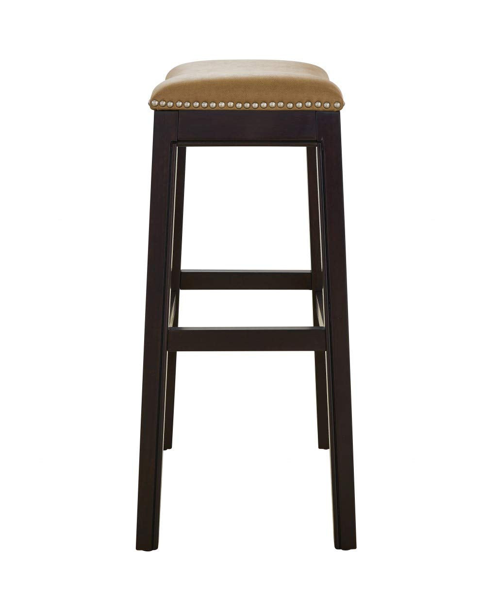 Old world details mix with modern design elements in this 30 Espresso and Carmel Saddle Style Counter Height Bar Stool This rich dark finish counter height stool blends sturdy solid wood construction with soft cushioned faux leather seating that is complimented by nail head details The classic saddle style seat is comfortable and gives this stool a casual air that makes it versatile enough for kitchen bar area or any room that needs extra seating 30 x 205 14 25 Solid Wood Construction Foot Rest for Comfort Metal Cover on Footrests for scratch protection Features. 30 in Espresso Carmel Saddle Style Counter Height Bar Stool. Made from high quality materialsSpecifications. Assembly Required Yes. Height 30 Inches. Width 205 Inches. Depth 1425 Inches. Material Vinyl Wood Steel. Color Espresso. Style Traditional. Country of Origin Vietnam. Weight 175 lbs