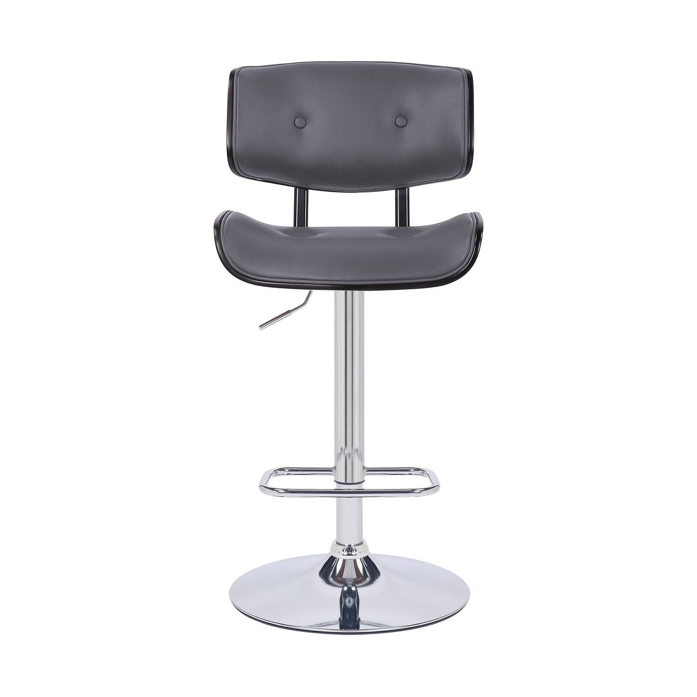 HomeRoots Wood, Metal, Foam Faux Leather Adjustable Gray Tufted Faux Leather Black and Chrome Swivel Barstool.