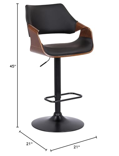 HomeRoots Wood, Metal, Foam Faux Leather Black Faux Leather and Walnut Wood and Black Swivel Adjustable Bar Stool