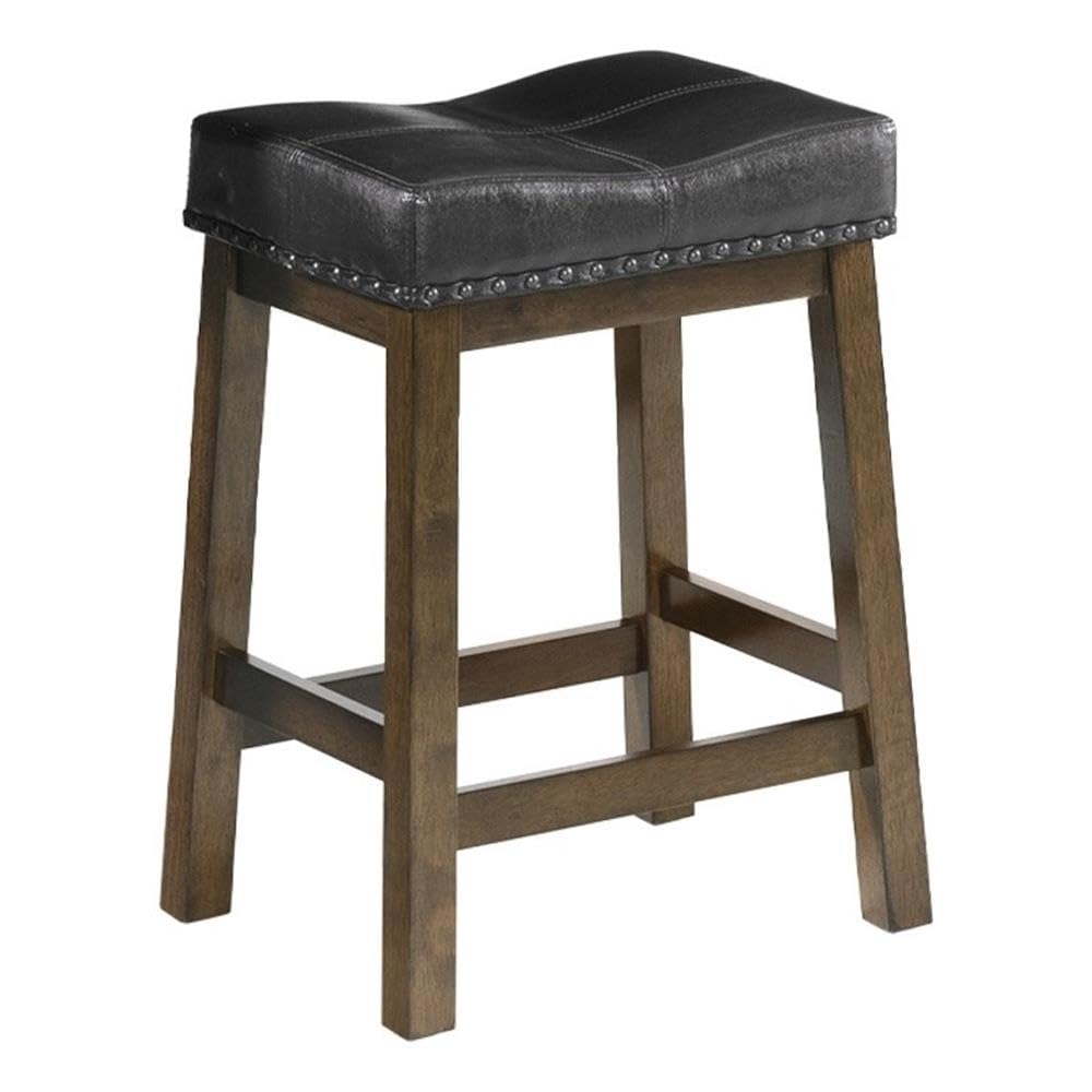 The Kona 24" Tall Backless Counter Stool is the perfect seating solution for your entertainment ensemble. Made from solid mango wood, this stool features an raisin finish with distressed details for a warm and well-worn look. The easy-to-clean faux leather upholstery in a dark brown hue provides a comfortable seating option, while the nailhead trim adds a touch of distinction. Assembly is required for this bar stool. | Constructed from high-quality solid mango and select hardwood | Unique hand distressing ensures each piece is one-of-a-kind | Includes stylish faux-leather upholstery | Comfortable cushioned seats