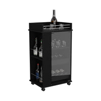 Lansing Bar Cart With Glass Door, 2-Side Shelves And Casters, Black