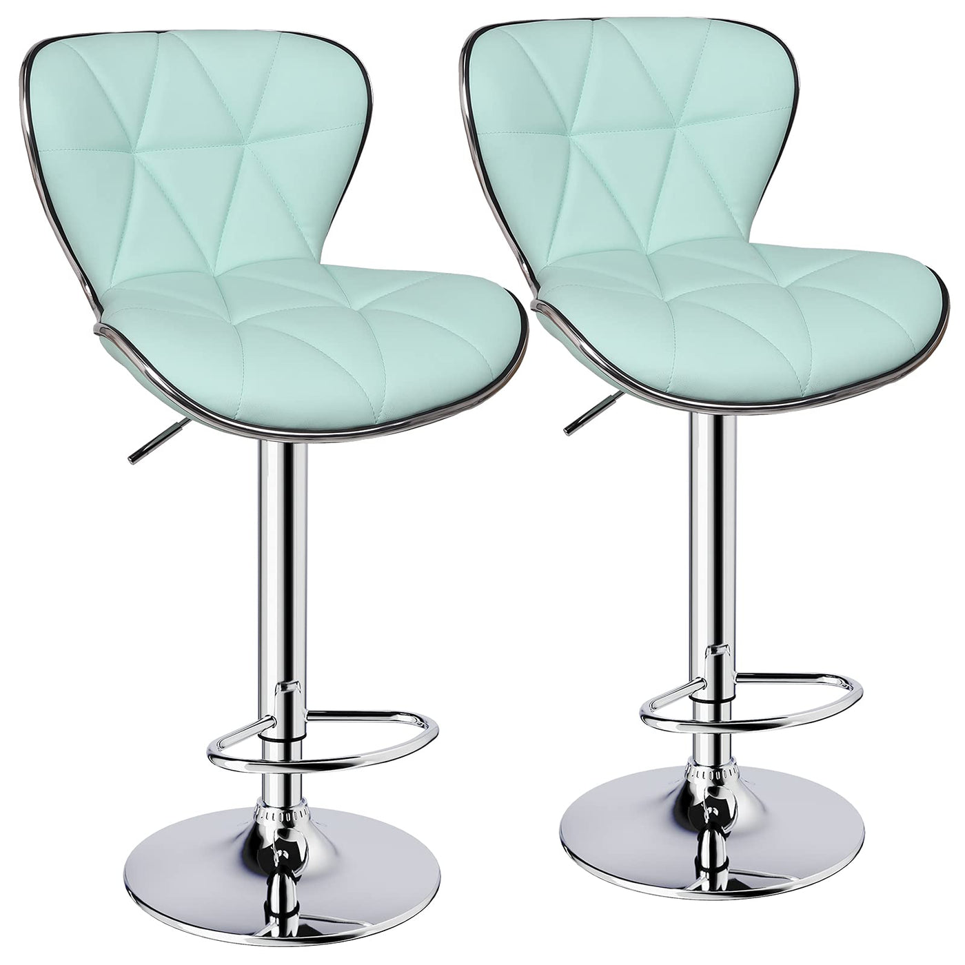 Leopard Shell Back Adjustable Swivel Bar Stools, Pu Leather Padded With Back, Set Of 2 (Mint Green)
