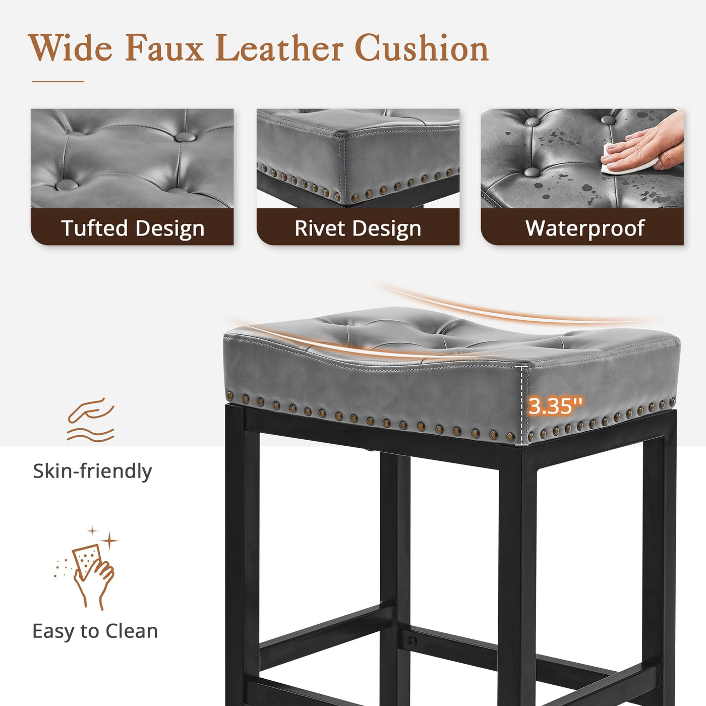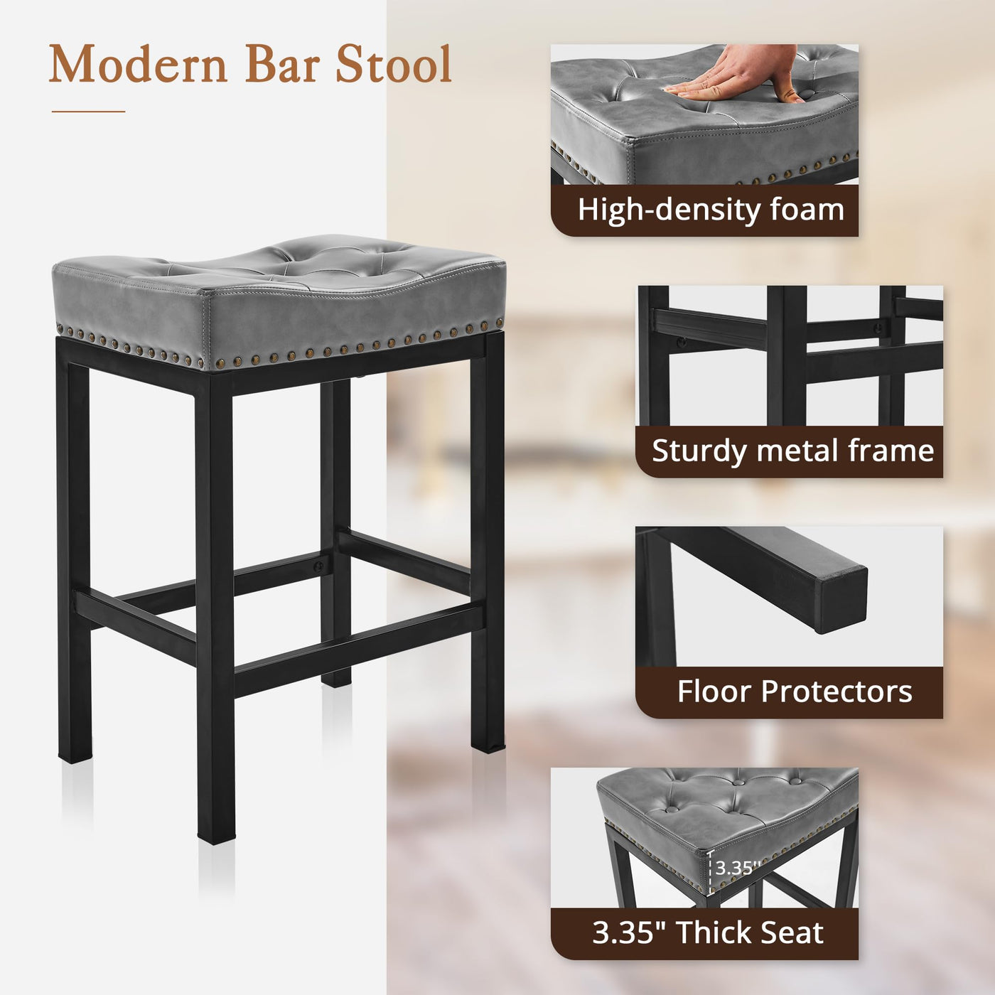 Lue Bona Counter Height Bar Stools, 24 Inch Saddle Backless Bar Stools Set Of 4 For Kitchen Counter, Faux Leather Counter Stools With Black Metal Legs, Modern Kitchen Island Stools, Dark Gray