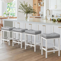 Lue Bona Counter Height Bar Stools, 24 Inch Saddle Backless Bar Stools Set Of 4 For Kitchen Counter, Faux Leather Counter Stools With White Metal Legs, Modern Kitchen Island Stools, Light Gray