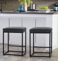 Maison Arts Black Counter Height 24' Bar Stools Set Of 2 For Kitchen Counter Backless Modern Square Barstools Upholstered Faux Leather Stools Farmhouse Island Chairs, (24 Inch,Black)