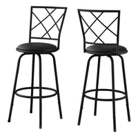 Monarch Specialties 2375 Stool, Set of 2, Swivel, Bar Height, Metal, Pu Leather Look, Black, Contemporary, Modern Barstool, 16' L x 16' W x 44' H