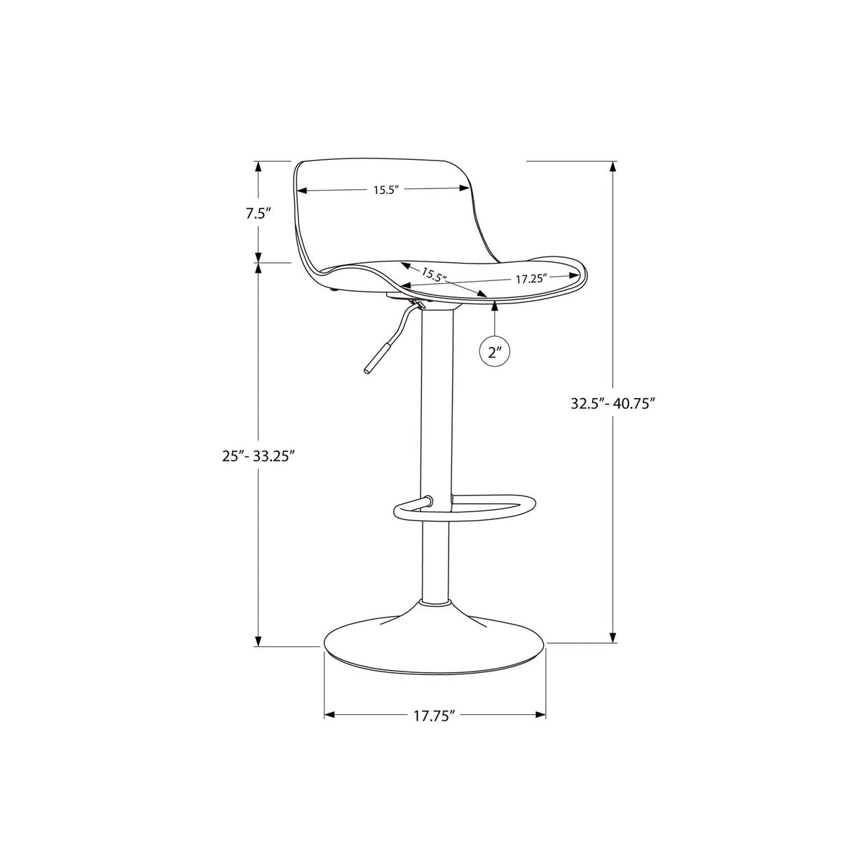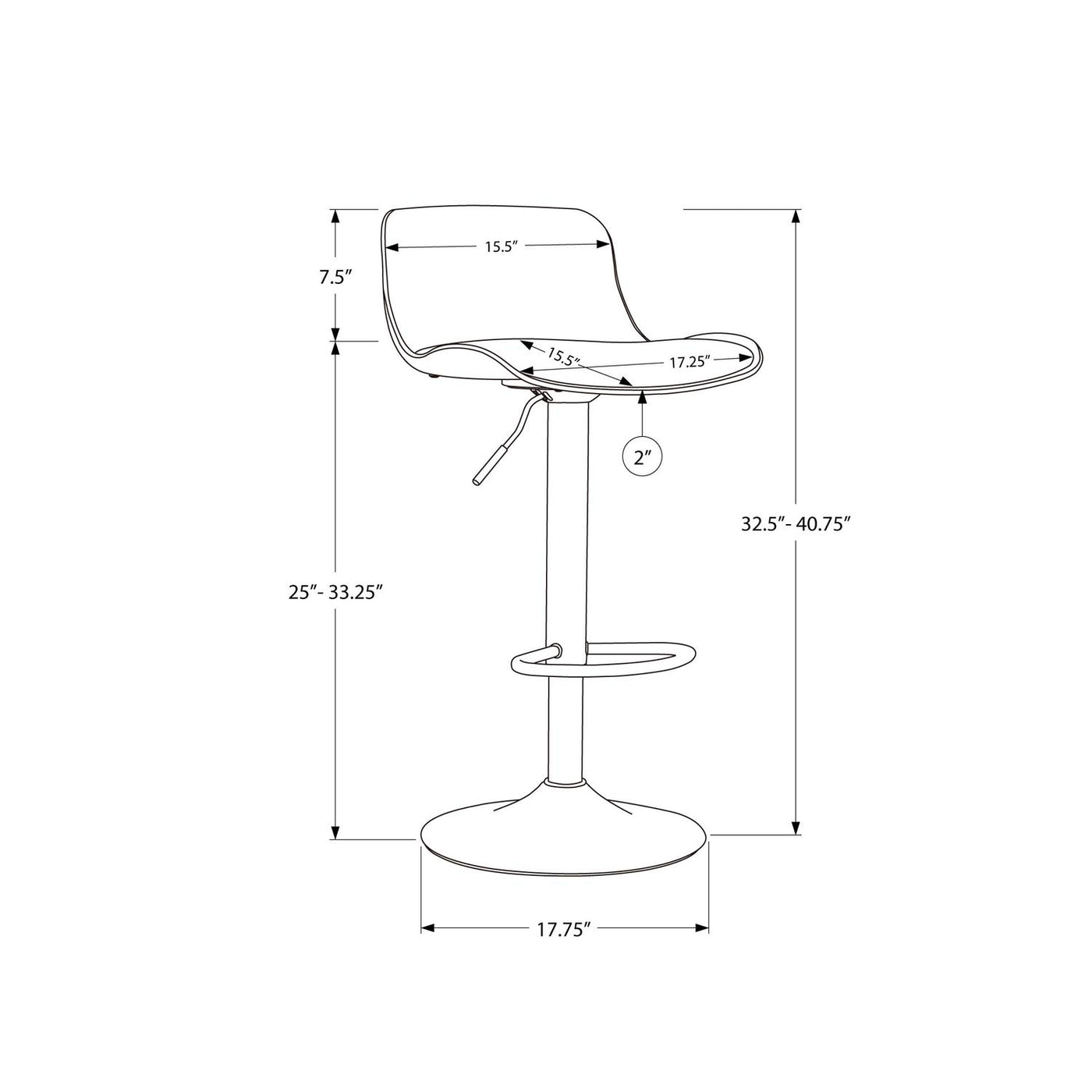 Monarch Specialties Barstool Set of 2 Counter or Bar Adjustable Height Swivel Low Back Metal Base Leather Look Fabric Barstool - Black