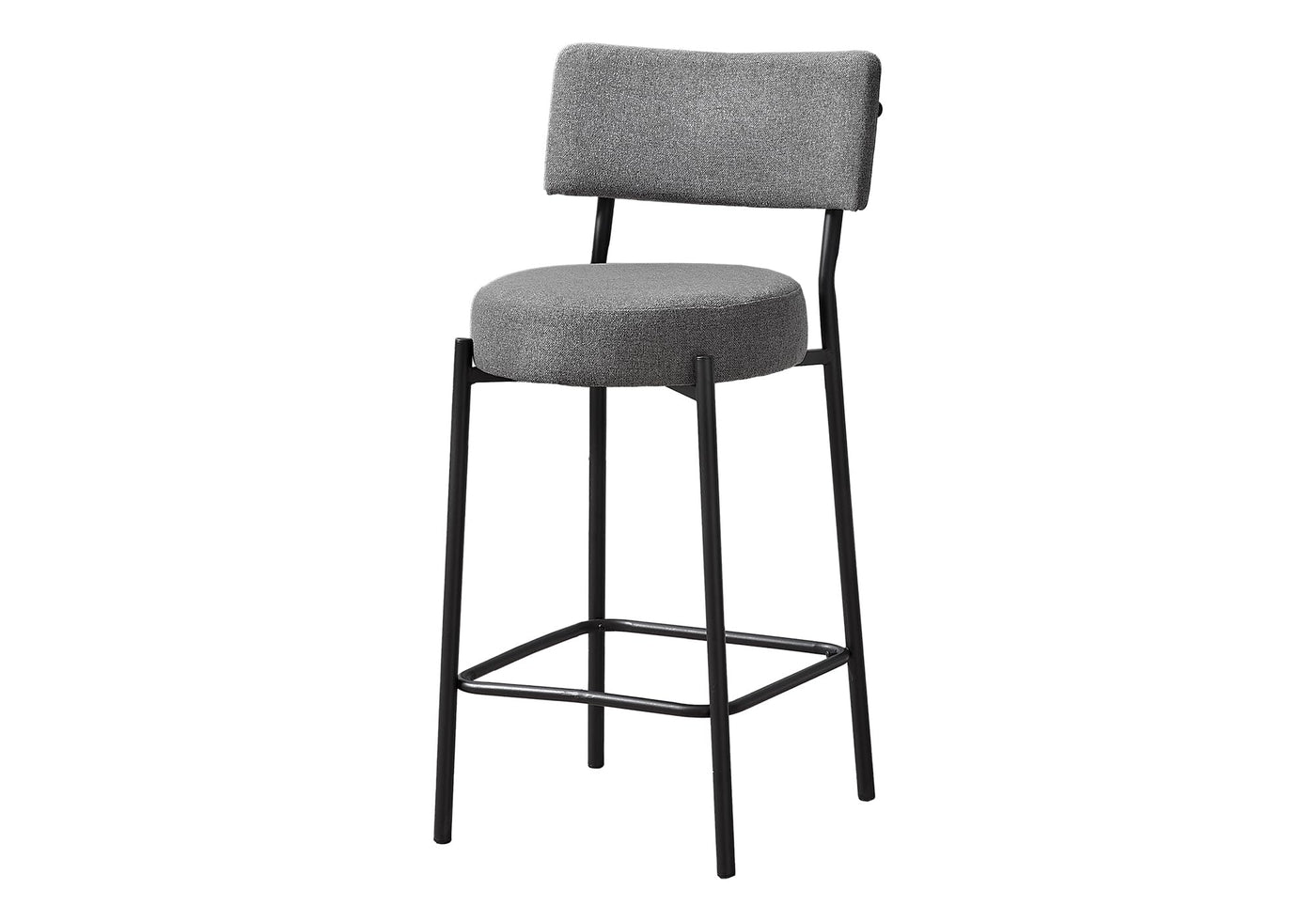 SET OF 2 COUNTER HEIGHT BARSTOOLS: This set of 2 contemporary barstool chairs standing at 37 H, upholstered in a durable grey fabric brings a chic fashionable style to your kitchen. | STURDY CONSTRUCTION: The sturdy black metal legs with a built-in footrest offers comfortable and durable seating for everyday dining or entertaining. | PADDED CUSHIONING: The sleek, curved padded backrest and thickly padded seats with foam cushioning provides extra support for maximum comfort. | EASY TO ASSEMBLE: The illustrated, step by step instructions makes this an easy to assemble, ready to add a fresh, modern element to your dining and entertainment area. | 2 YEAR LIMITED WARRANTY: These transitional style chairs come with a 2 year limited warranty against any manufacturer defects for your convenience.
