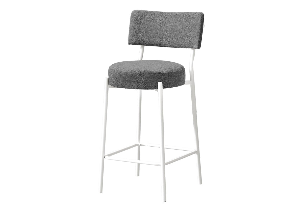 Monarch Specialties I 2247 Barstool, Counter Height, Set of 2, Kitchen, Grey Fabric, White Metal, Contemporary, Modern