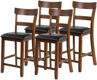 Nafort Counter Height Bar Stools Set Of 4, Farmhouse 25.5” Wood High Dining Chairs, Counter Stools With Back For Kitchen Restaurant Bar, Rubberwood Legs & Black Pu Leather Cushion