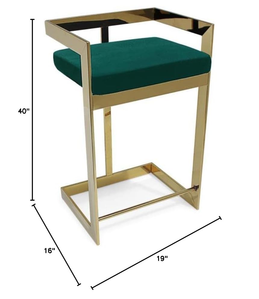 Gray Velvet Polished Gold Base Barstool, 30'' Seat Height. 19 in * 16 in * 40 in H