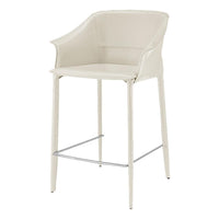 Sleek Designer Appeal - 36.5" counter stool incorporates clean lined silhouette that's amplified by the barrel back that curves, waterfall seat and full-covered PU in Vanilla tone creating an edgy design that stands out. The PU is of recycled leather. Fully Assembled. Available in Vanilla and Light Mocha.
