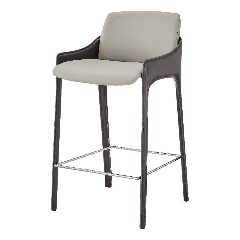 Sleek Designer Appeal - 35" counter stool incorporates clean lined silhouette that's amplified by subtle curves, waterfall seat and duo-tone PU in taupe/dark brown creating an edgy design that stands out. Its's also covered with recycled leather. Fully Assembled. Available in Taupe/Dark Brown. Set of 2.