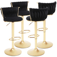 Oduwa Velvet Barstool Set Of 4,Woven 360° Swivel Counter Height Bar Stools With Gold Metal Legs,Modern Adjustable Dining Kitchen Pub Accent Chair With Back And Footrest Counter Height Dining Chairs
