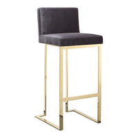 Pangea Home Dexter 30" Modern Velvet & Polished Steel Bar Stool In Gray/Gold