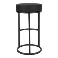 Minimalist round Bar stool with foot rest; uniform color in legs and seat; seat height is 30"; seat depth is 15.5"; foam density is 2.0 (high density).Features:Material: Faux leather, metalFinish: BlackStyle: ModernUniform color in legs and seatSpecifications:Product Dimensions: 30"H x 15.5"W x 15.5"DProduct Weight: 15 lbsWeight Capacity: 300 lbs