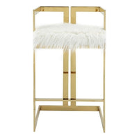 Pangea Home Stainless Steel Bar Stool Chair In White - Semi-Circle Seat