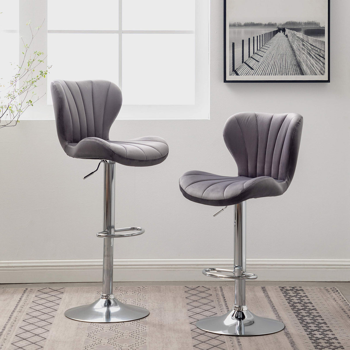 Roundhill Furniture Ellston Velvet Adjustable Swivel Barstools In Gray, Set Of 2, Grey