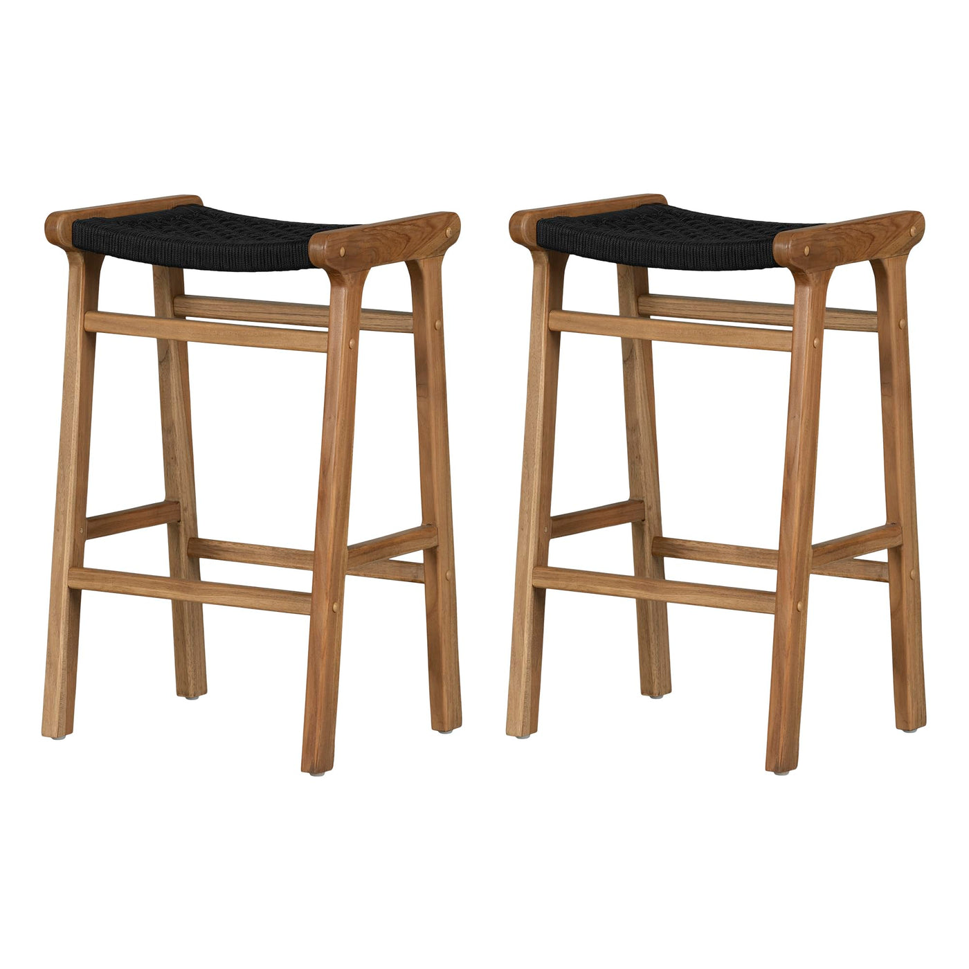 Set of 2 bar-height seats Your partner has been begging you for ages to set up a bar area in your common room? Now's the time to give in to their request! With this set of 2 rope and teak wood bar stools, you can create a trendy cocktail area in your home. For proper legroom, install them at a counter height of 40 to 42 in. Get inspired by the bohemian harmony trend Go for the boho style inspired by the nomadic lifestyle and eclecticism for your home bar area. You'll appreciate teak for its natural variations and olefin rope for its delicate pattern. Both materials are water and shock resistant. What are you waiting for to plan your next evening with friends? 1-year limited warranty South Shore is proud to stand behind this rope bar stool, set of 2 with an exclusive 1-year limited warranty. Shop with confidence knowing your purchase is always covered. All our furniture meets or exceeds North American safety standards applicable for each type of product and all our packaging is tested and certified to reduce the risk of damage during shipment.. This item it shipped in 1 box. Assembly is required by 2 adults and tools are not included. If you have questions regarding this product or need assistance do not hesitate to contact South Shore Furniture 7 days support. You can reach customer support by phone at 1.800.290.0465 or you may chat with an agent live. This product is made in Indonesia for South Shore with Wood and Fabric. Accessories not included.