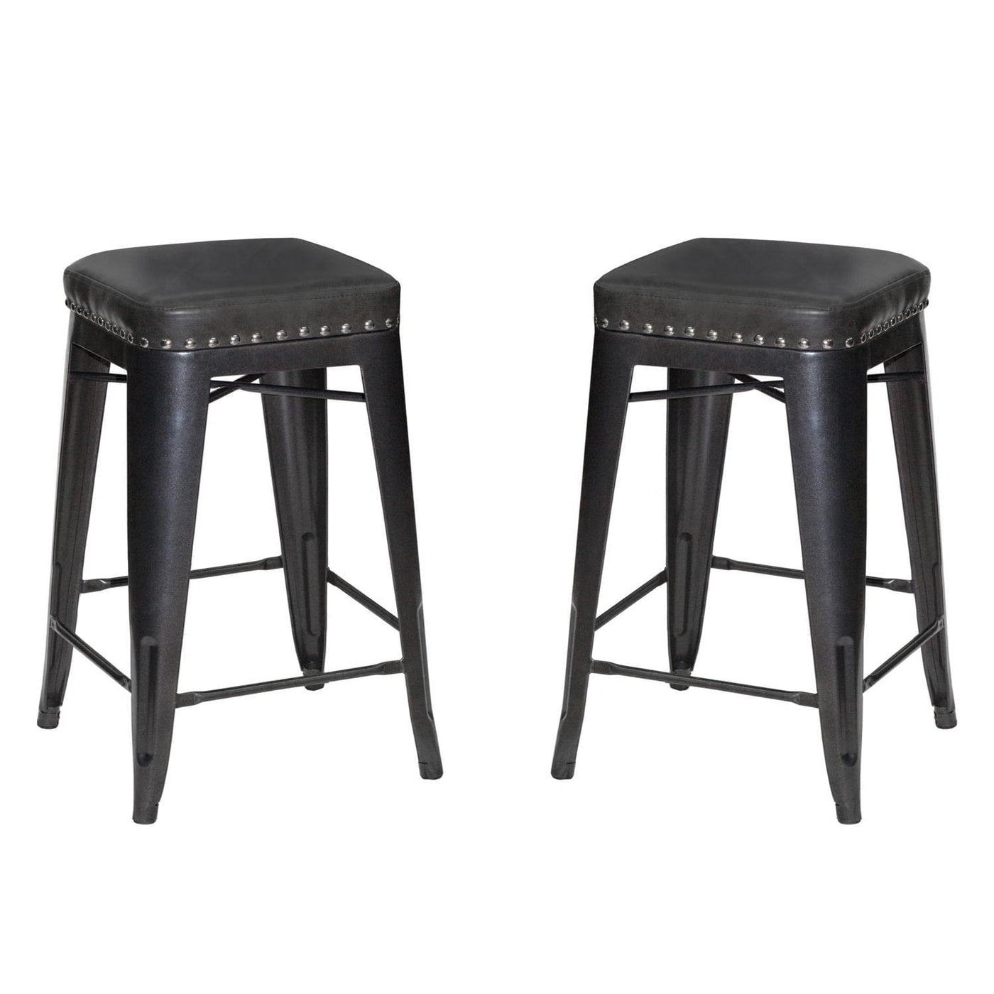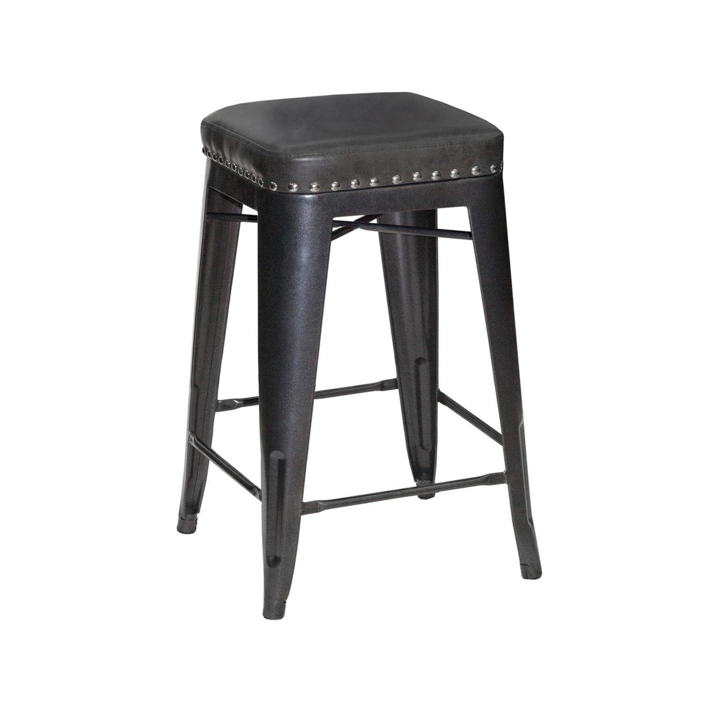 Sleek style in a compact design is the hallmark of this Hank Backless Counter Stool. Desgined to fit 36-Inch high counters, the seat features an upholstered granite leatherette seat that ensures a comfortable seat every time. Details like nickel nailhead and box seat construction make sure the stool stands out as a great addition to industrial, farmhouse or transitional interiors. The fully welded steel frame makes for a sturdy, durable stool and arrives fully assembled.. Commercial grade strength in a Backless Counter Stool