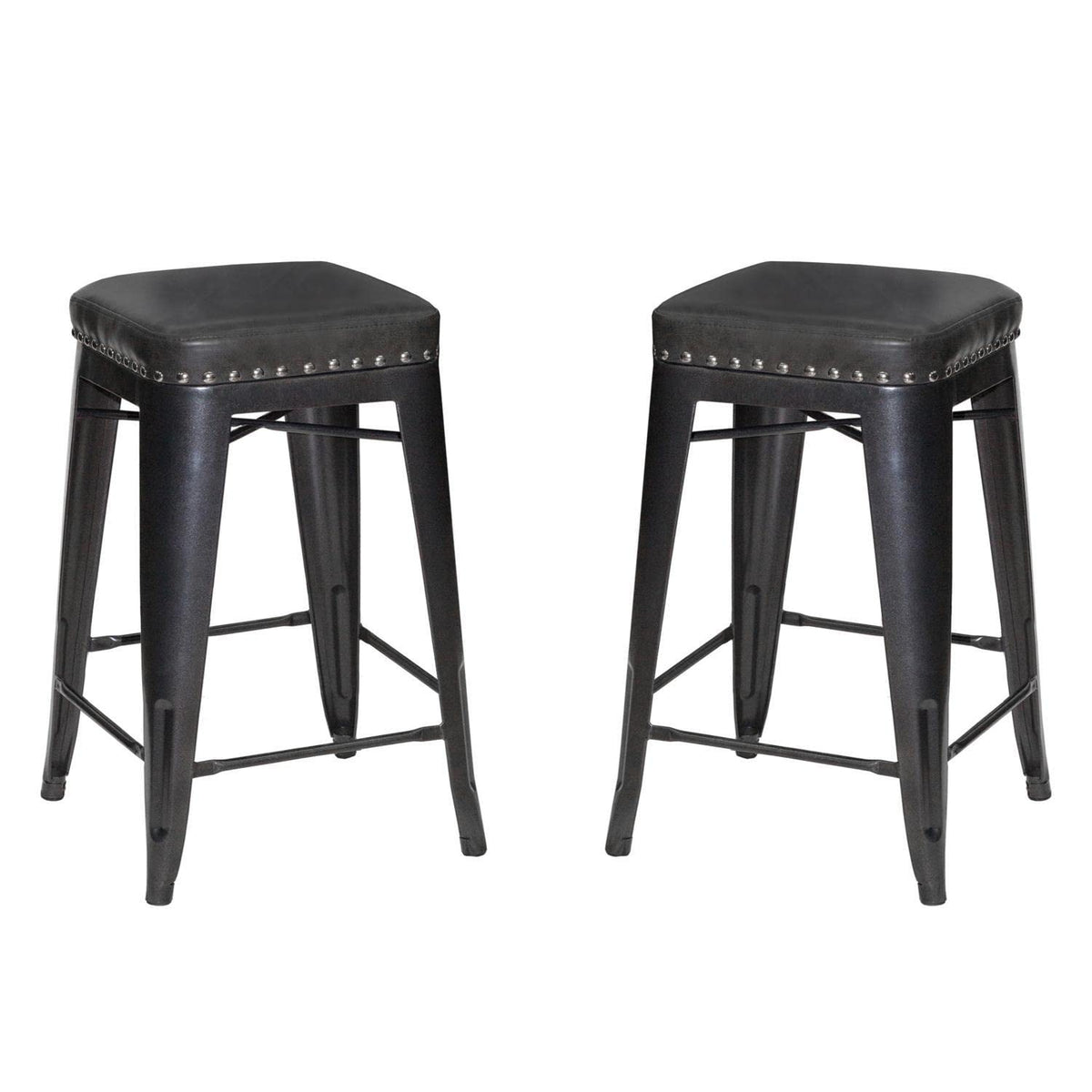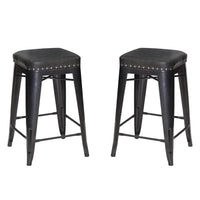 Steve Silver Backless Hank Barstool, Set of 2 Chairs, Graphite Gray Metal, Kitchen, Dining Room, Cafe, Upholstered Seat, Faux Leather, Steel Frame, 16.92" L x 16.92" W x 25" H, Grey