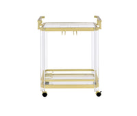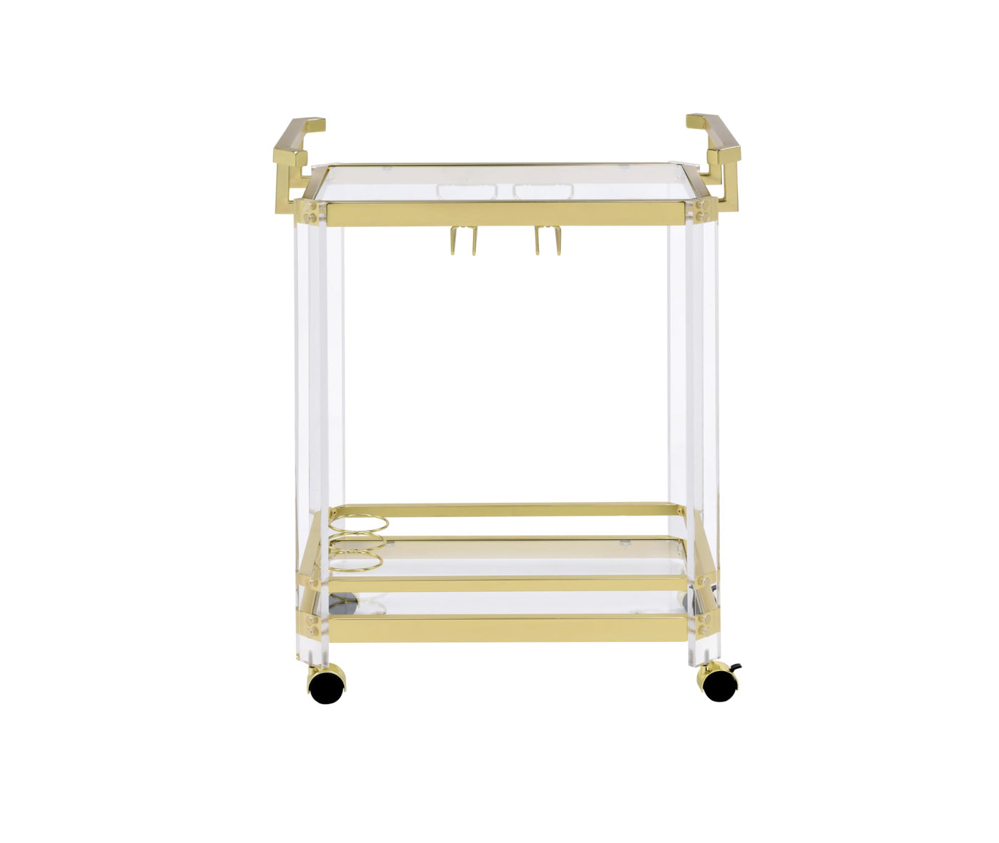 Steve Silver Furniture Aerin Server Cart, Acrylic and Tempered Glass, Gold Chrome Finish, w/Bottle and Stemware Storage, 3-Wine Bottle Storage, Dining Room, 17" D x 28" W x 35" H, Gold/Chrome