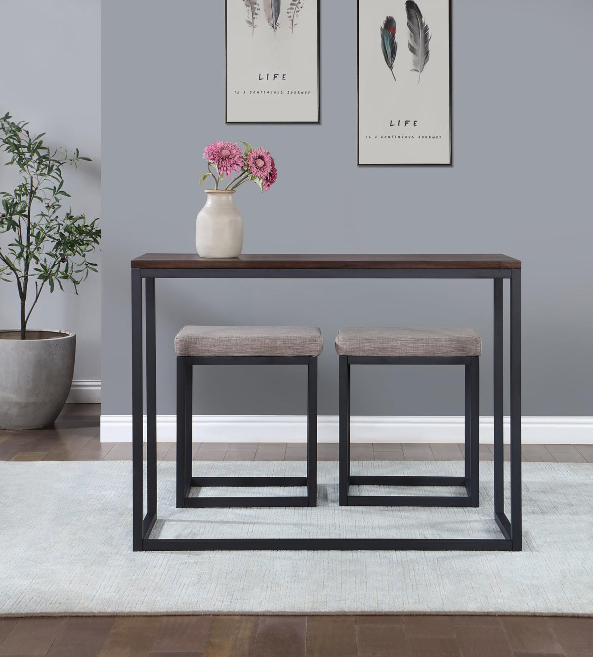 Steve Silver Furniture Yukon Counter Bar, with 2 Stools, Modern Transitional, Small Dining Table, Desk, Iron Sled Base, Kitchen Dining Room, Hall Piece, Apartment, 16 x 48 x 36 inches, Brown