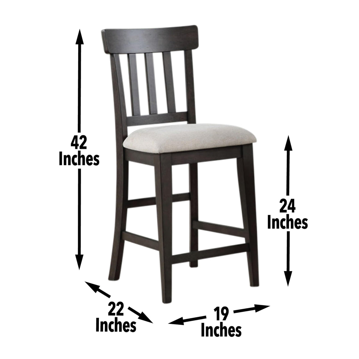 A comfortable modern farmhouse styled chair in a deep dusky cedar finish, Napa shows that style can also be comfortable in this Counter Chair. Tapered legs make for a sleek presentation while the shaped top rail and upholstered seat make your dining experience much more pleasurable. Stretchers add comfort and strength to the structure of the chair.
