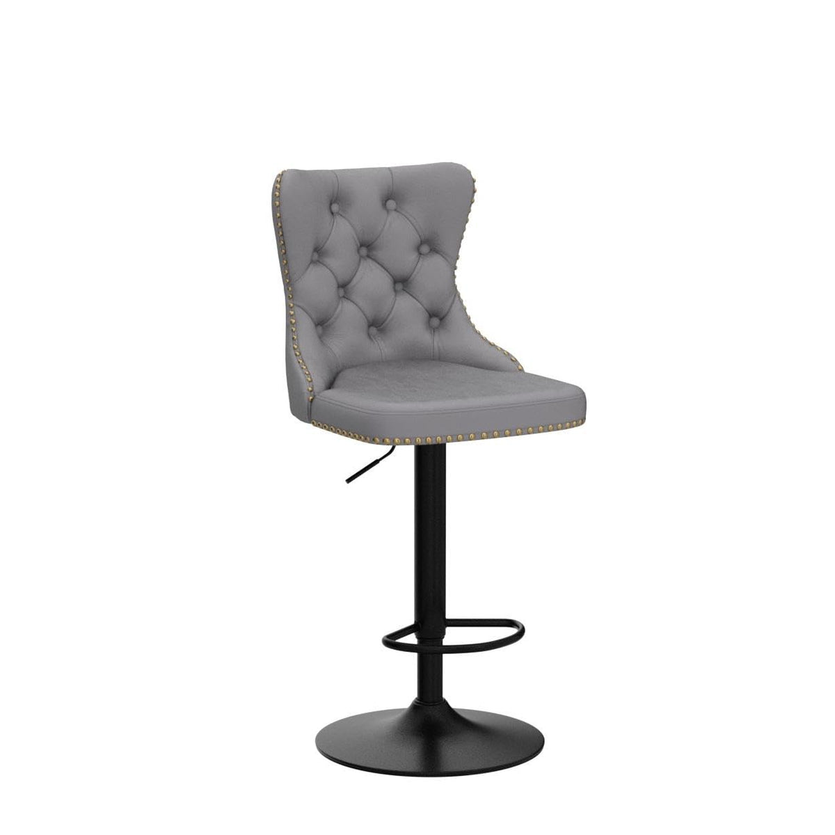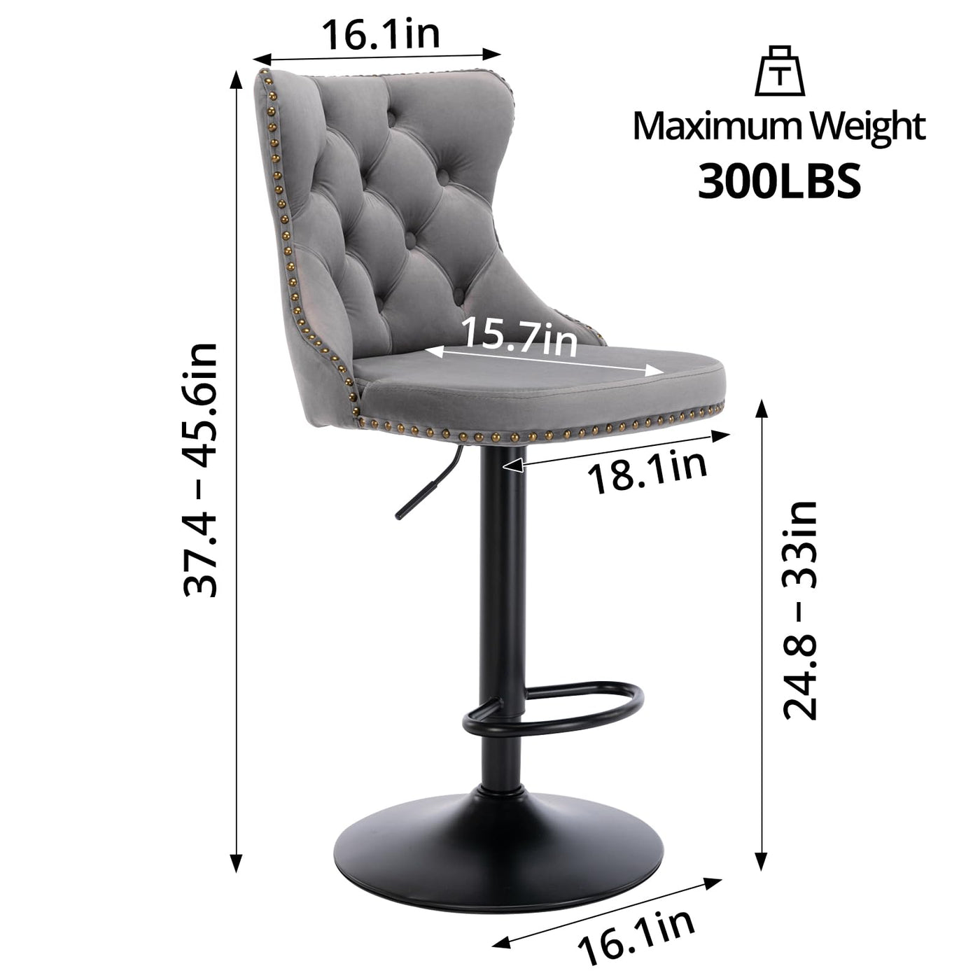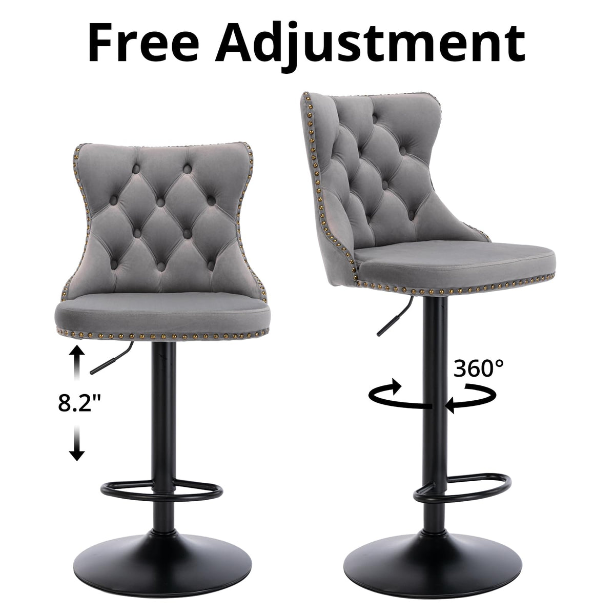 Swivel Bar Stools Set Of 2, Adjustable Counter Height Barstools With Nailheads Trim, Button Tufted Back And Black Footrest, Velvet Upholstered Bar Chairs For Dining Room Home Bar Kitchen Island, Gray
