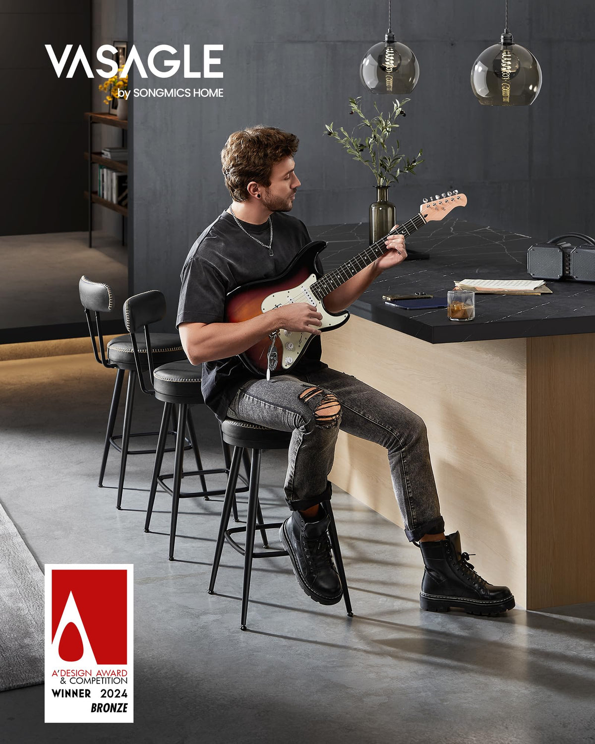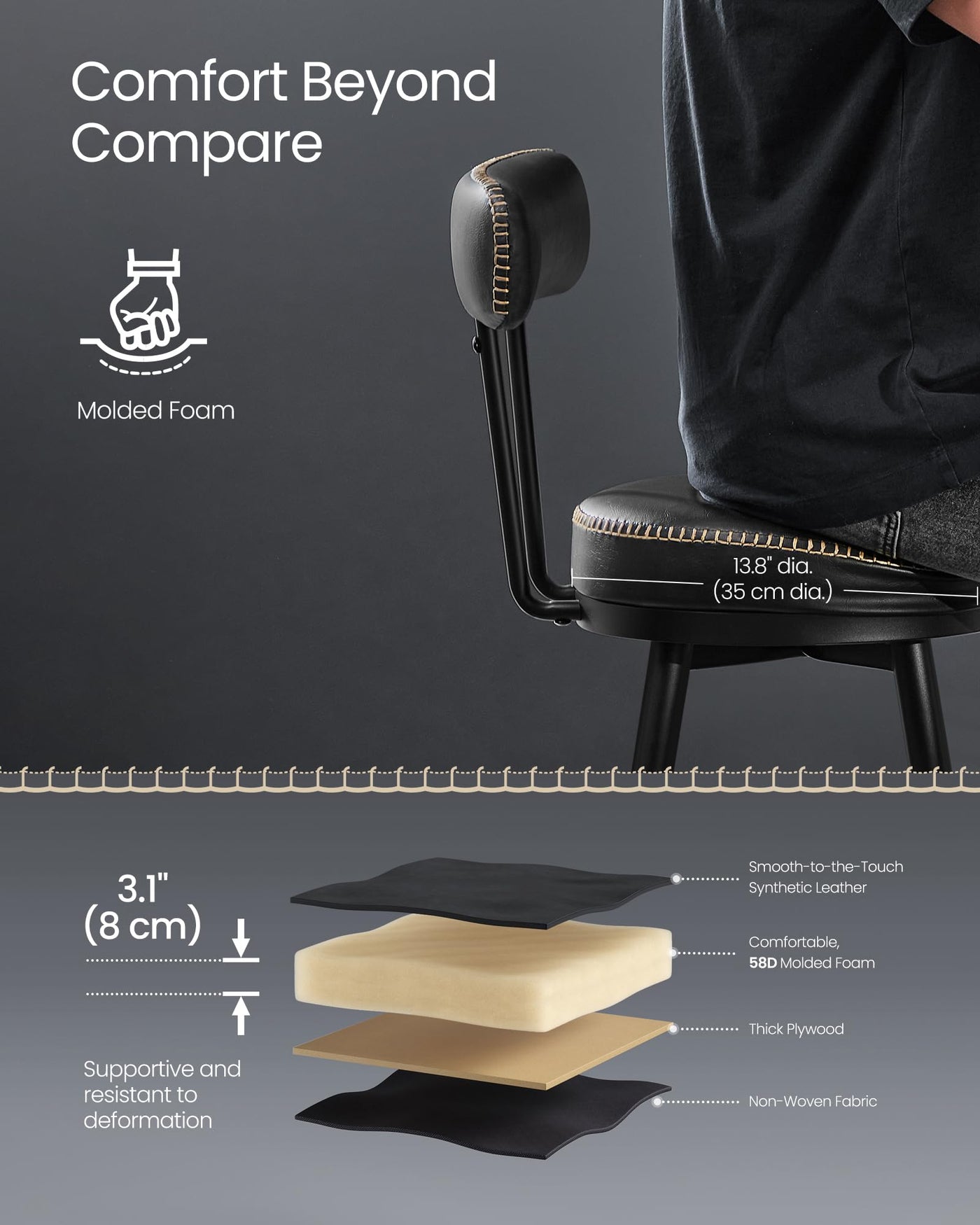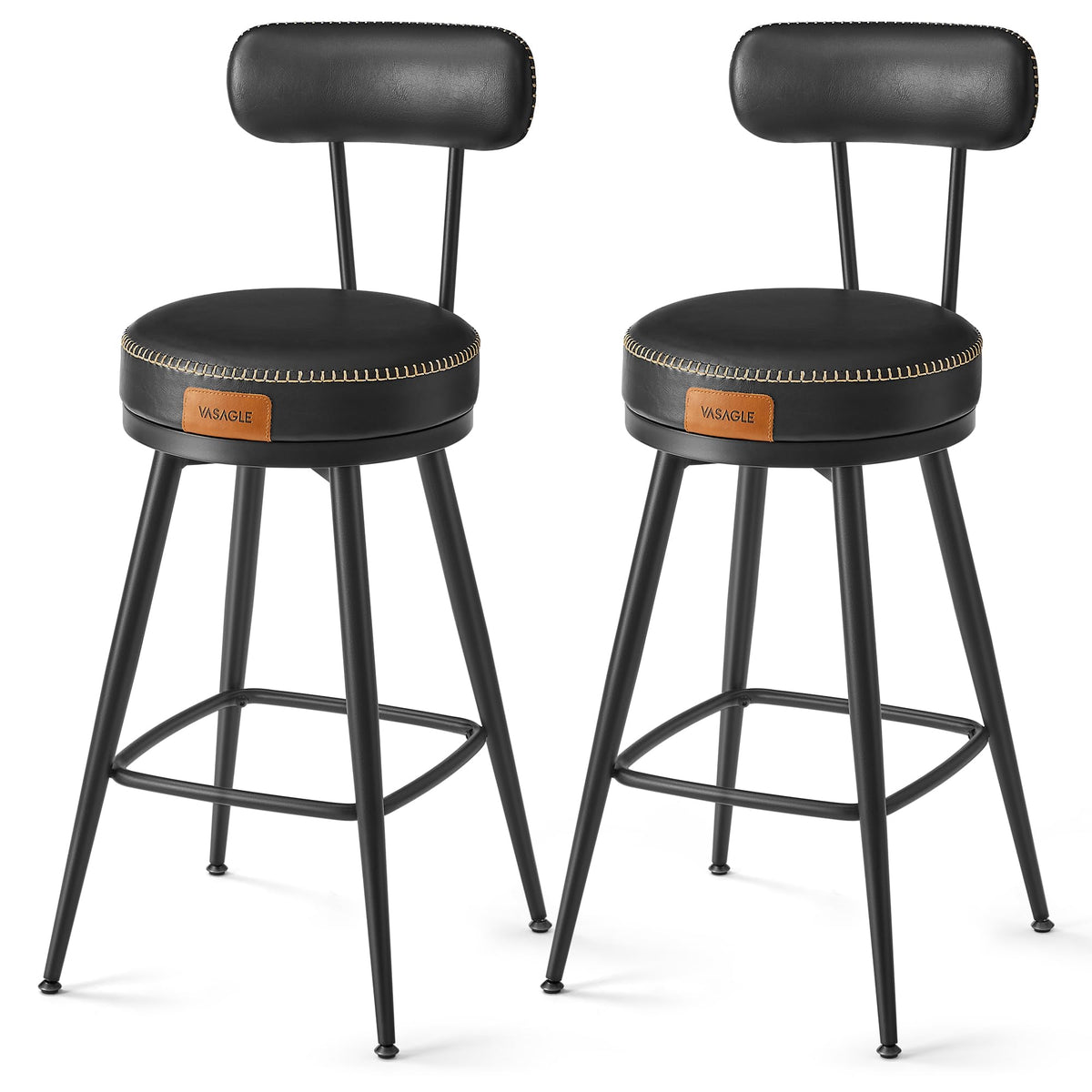 Vasagle Ekho Collection - Bar Stools Set Of 2, Counter Height Swivel Bar Stools With Back, Synthetic Leather With Stitching, Mid-Century Modern, 25.6-Inch Tall Barstools For Kitchen Bar, Ink Black