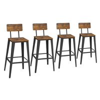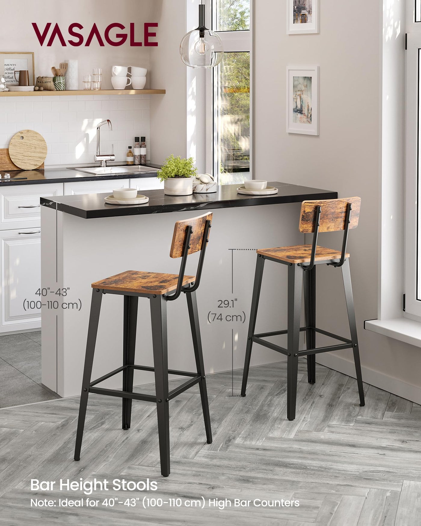 Vasagle Set Of 4 Bar Stools, Bar Height Stools, Tall Bar Stools With Back, Bar Chairs, Steel Frame, Industrial Style, Easy Assembly, Rustic Brown And Ink Black Ulbc278B01