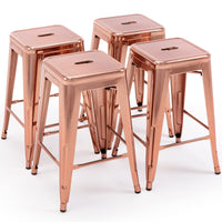 Vogue Furniture Direct 24' Bar Stools Backless Metal Barstools Indoor-Outdoor Counter Height Stools With Square Seat, Set Of 4 (Rose Gold)