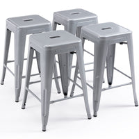 Vogue Furniture Direct 24' High Bar Stools Backless Silver Metal Barstools Indoor-Outdoor Counter Height Stools With Square Seat, Set Of 4