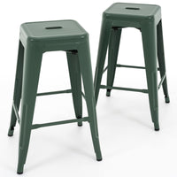Vogue Furniture Direct 24 Inch Metal Bar Stools, Backless Counter Height Barstools, Indoor Outdoor Stackable Stools With Square Seat, Set Of 2 (Dark Green)