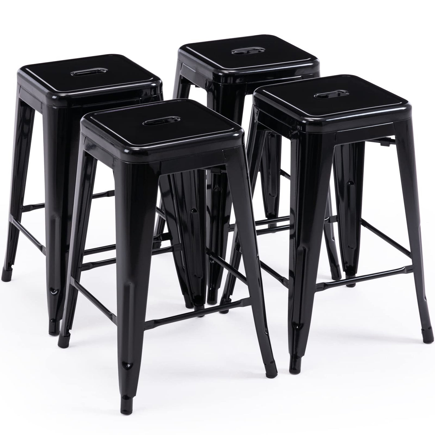Vogue Furniture Direct 24 Inch Metal Bar Stools, Backless Counter Height Barstools, Indoor Outdoor Stackable Stools With Square Seat, Set Of 4 (Black)
