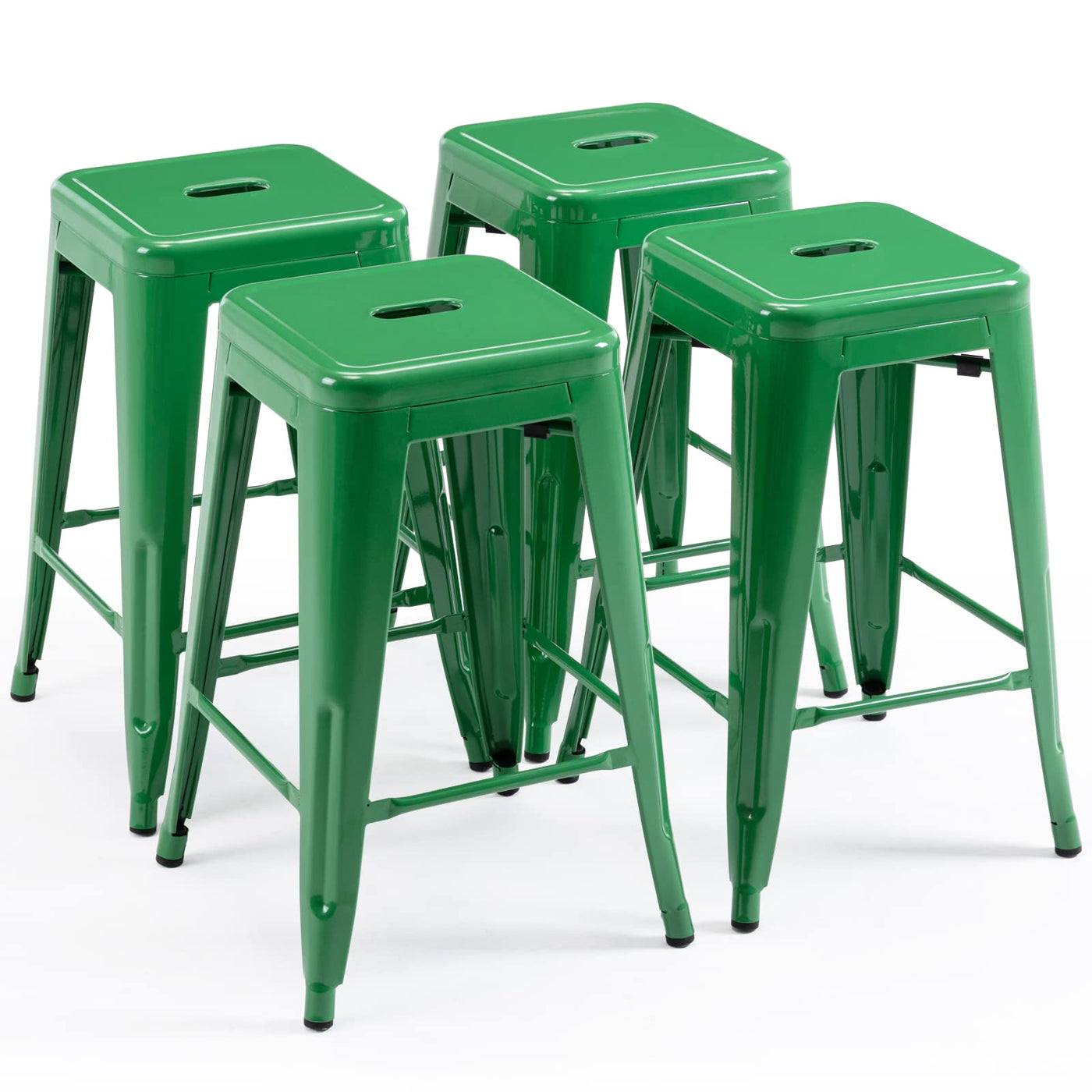 Vogue Furniture Direct 24 Inch Metal Bar Stools, Backless Counter Height Barstools, Indoor Outdoor Stackable Stools With Square Seat, Set Of 4 (Green)